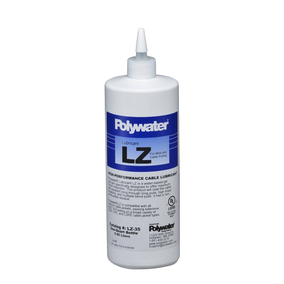 Le lubrifiant Polywater® type LZ est un gel haute performance à base d'eau, spécialement conçu pour faciliter le tirage de câbles LSZH/LSHF (à faible émission de fumées et exempt d'halogène) notamment dans les Centrales nucléaires et autres sites de production d'énergie, les systèmes de transport de masse et aéroports ou les industries pétrolières et pétrochimiques