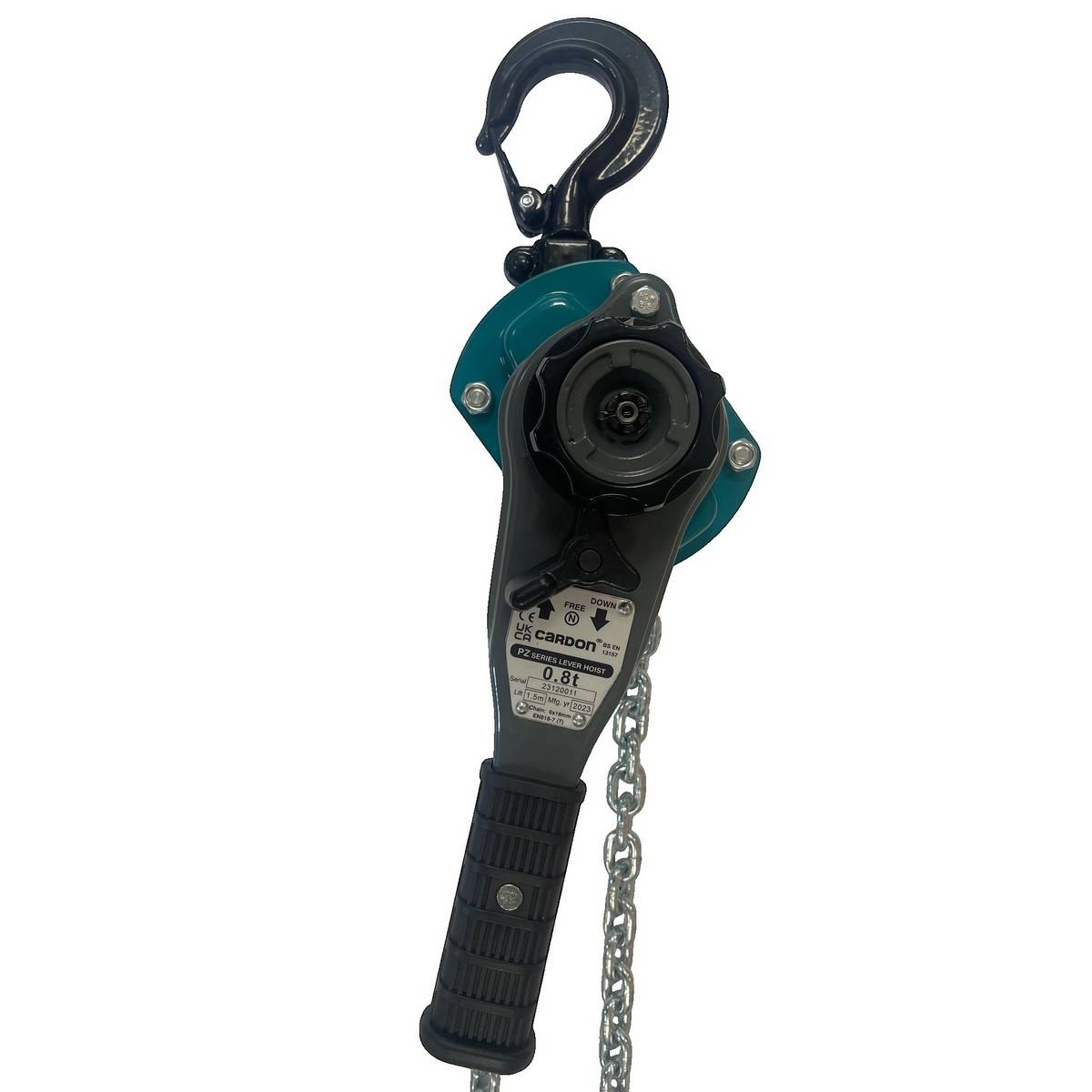 Le cadre, la chaîne, les crochets et les composants internes sont conçus pour durer et résister aux conditions de travail les plus rudes : traitement thermique des pièces critiques, acier haute résistance, gâchette de sécurité renforcée… chaque détail est pensé pour offrir un palan fiable et durable. Avec une hauteur de levage de 1,5 m ce palan combine efficacité, ergonomie et endurance.
